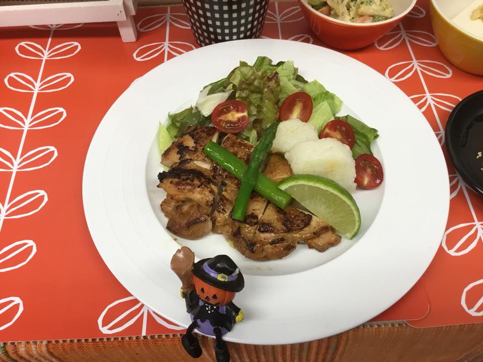 初日はガイヤーン(タイ風焼き鳥)です。色々と勉強になります❗️付け合わせは、生野菜 アスパラミニトマト長芋ライムです。