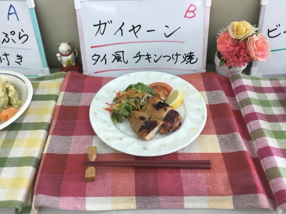 我が事業所でもタイフェス??をさしていただいております。 初日のガイヤーンはタイ風チキンつけ焼きなのですが、なかなかいい感じに仕上がったと思います。