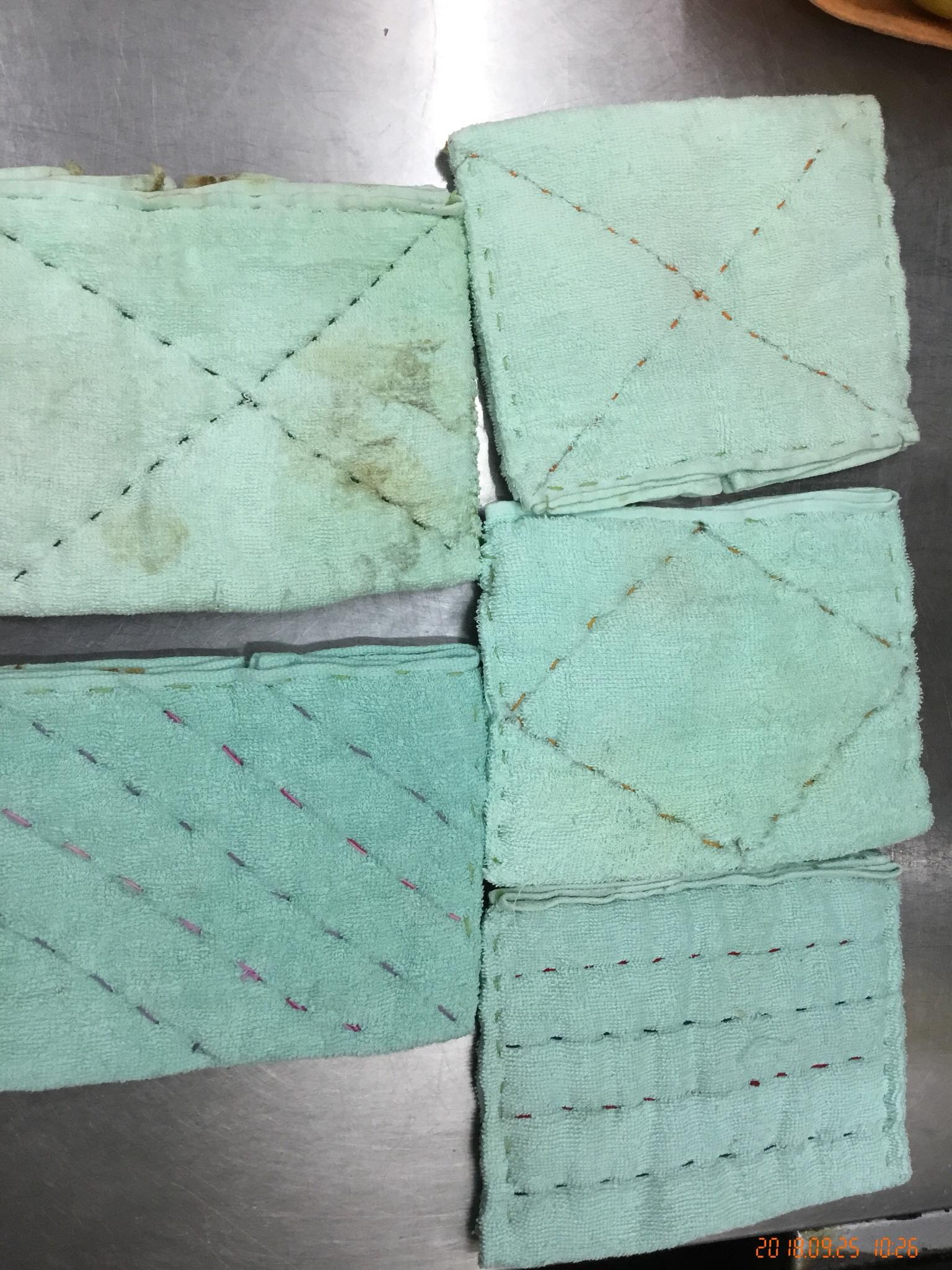 今日は「鍋つかみ」をパートさんに作ってきてもらいました。いつもはダスターを折りたたんだだけで使用していたので、