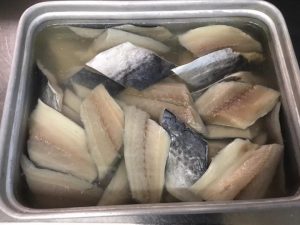魚に直接塩するやり方もあるのですが、均等な塩加減にするには塩水の方が簡単で確実ですね。