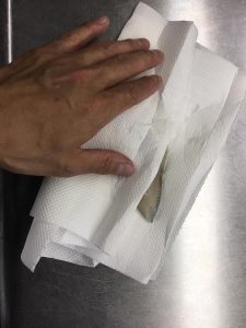 後は風通しの良い所で、途中ひっくり返して両面乾かす。ただし皮目はすぐ乾くが、