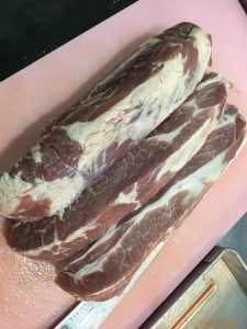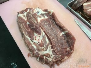 それに伴い本日は、豚肉の漬け込みを行いましたが、前回の反省を踏まえ、今回は豚肉を盾に3等分し観音開きにしました。そうすることにより、1本1本の大きさを比較的揃えることができました。これで焼き時間もほぼ均一となることでしょう。