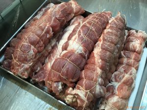 さて来週より弊社全事業所で、イタリアンフェアーを行います。初日のメニューは「豚肩ロースのポルケッタ」です。