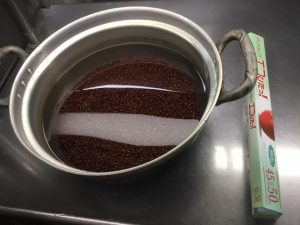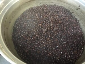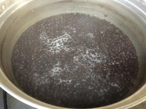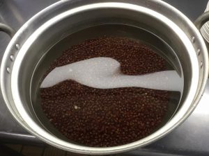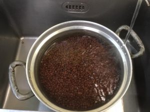 ①北海道産大納言小豆をたっぷりのお水で湯がきます。(1回目)