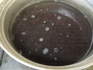 ④グツグツしてきたら今度はざるにあけず、弱火にして柔らかくなるまでコトコト2時間ほど炊きます。