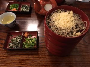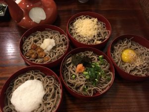 お昼ご飯は食べたかった蕎麦屋へ。この地方独特の「割子そば」(わりこではなくわりごと読む)。島根は信州と同じく、ソバ畑が多く、車で移動する際に光景が幾度と目に入りました。