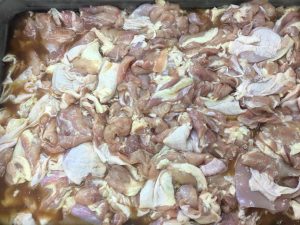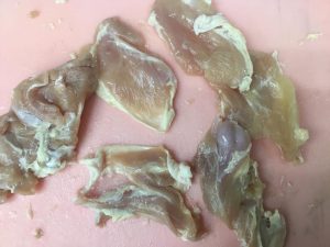 作り方は 鶏肉を削ぎ切りにして