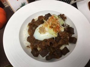 築地牛めしは国産ホルモンを使用し、赤みそベースで煮込みました。さすがに国産ホルモンのみでは原価が合わないので、玉ねぎとコンニャクを加えさせていただきました。