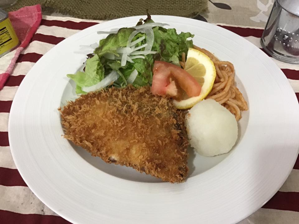 鰤をカツにして、大根おろしとぽん酢で提供しました。