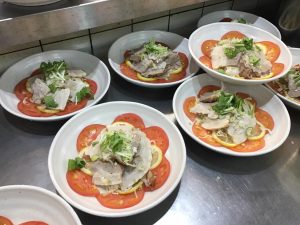 初日は白片肉(パイピェンロー)、蒸し豚を唐辛子の効いた酢醤油で食べる夏らしい一品です。?