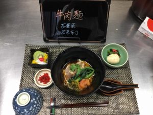 牛肉麺(ニョーローメン)…牛肉とトマトのラーメン。八角の香りと豆板醤の辛み。