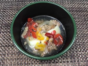 スープも豚肉、じゃがいも、玉ねぎ、パプリカで具沢山に。