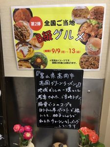 先日開催されたご当地グルメフェアより「富山県高岡グリーンラーメン?」を紹介したいと思います。