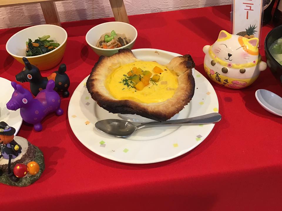 本日はハロウィン?ということで、カボチャの料理を一品提供してほしいとの要望があり、かぼちゃとベーコンのキッシュをお出ししました。