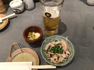 早速生ビールと数品を注文し、グビグビいきたいところを我慢しつつ待つ事10分ぐらいでしょうか、やっと酢モツが運ばれてきました。(この時点ですでに1342円)