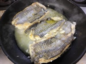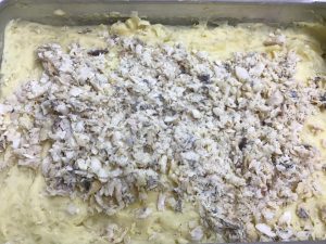 白ワインで酒蒸しにしてから身をほぐしてお汁ごとジャガイモに混ぜました。