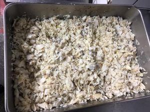 コロッケの具材はこのバカリャウと炒めた玉ねぎのみ、味付けも塩胡椒だけとシンプルに。