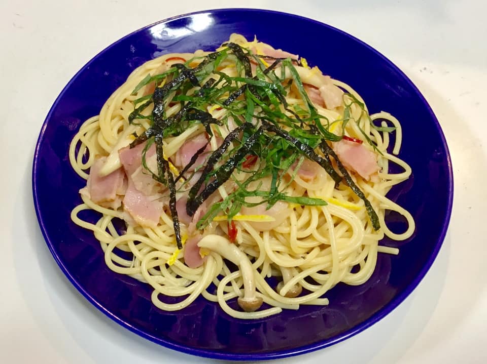 今回は、先月に食堂で出した和風パスタを、昼ご飯で食べれなかったので