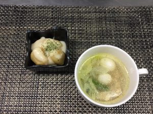 こちらはゆで卵が入ったチキンスープです。