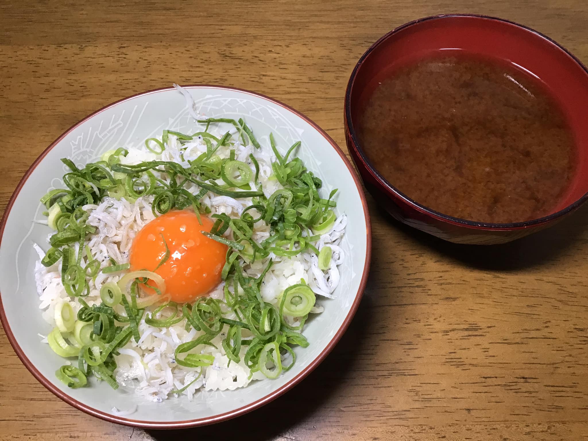 さて、今日の朝食は「しらすご飯生卵のせ」です。