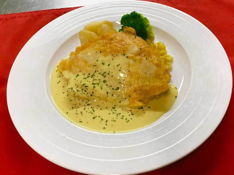 魚のピカタにはこれまでトマトソースやオーロラソースなどをかけていましたが、今回のハニーマスタードマヨソースが一番食数が多く好評でした。