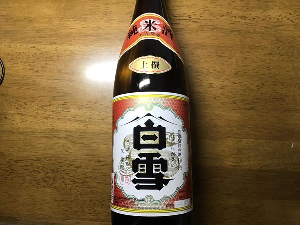 というのも、年末に伊丹に住む親戚から頂いた『白雪 純米酒』が非常に美味しくて、なんか「水」みたいに飲める日本酒なんですよ。