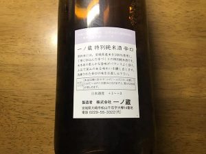 今回はちょっと違うのも飲んでみたくなり、ちょっと高かかったのですが、この「一の蔵」というのにしてみました。