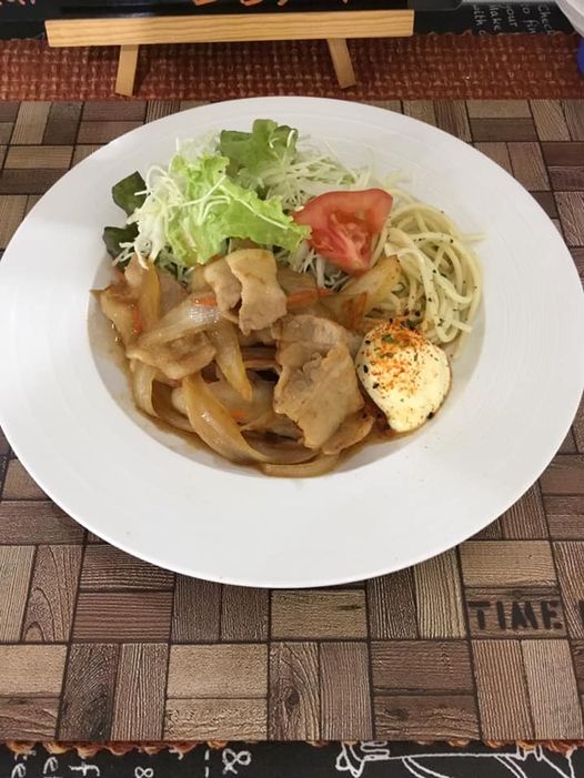 醤油ベースのタレで、お肉とタマネギを炒めたシンプルですがご飯が進むお料理です?