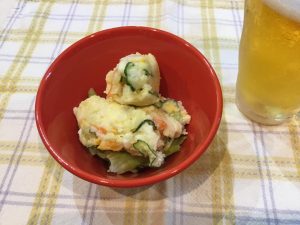夜ご飯に、別収穫の北あかりでポテトサラダをつくりました?もちろんビールのお共にですが、、、