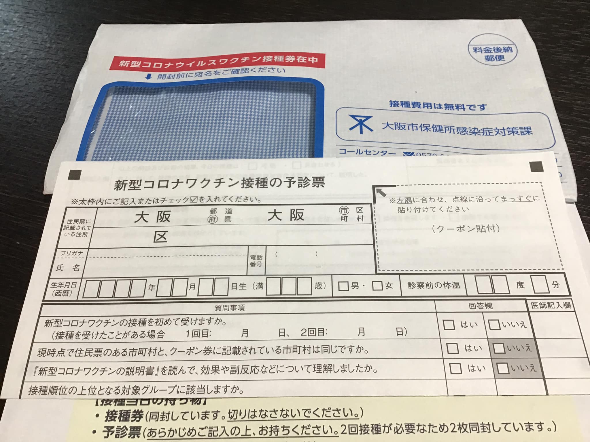 今週水曜日にワクチン接種券届きました。