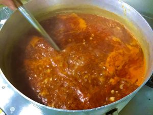 真っ赤なスープには粗挽きの赤唐辛子が大量に入っています。さらに赤みをだすためにパプリカパウダーを入れました。鮮やかな色が食欲をそそる激辛旨辛スープの完成です?