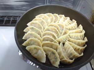 中身の具材をたくさん作ってしまったのと、餃子の皮を50枚入りを購入してしまった事、ぼーっと包んでたのが原因で気がつけば50個の餃子ができてしまっていました。