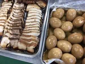 今回は、たまり醤油を使って、チーフ渾身のチャーシューと煮卵をトッピングです?