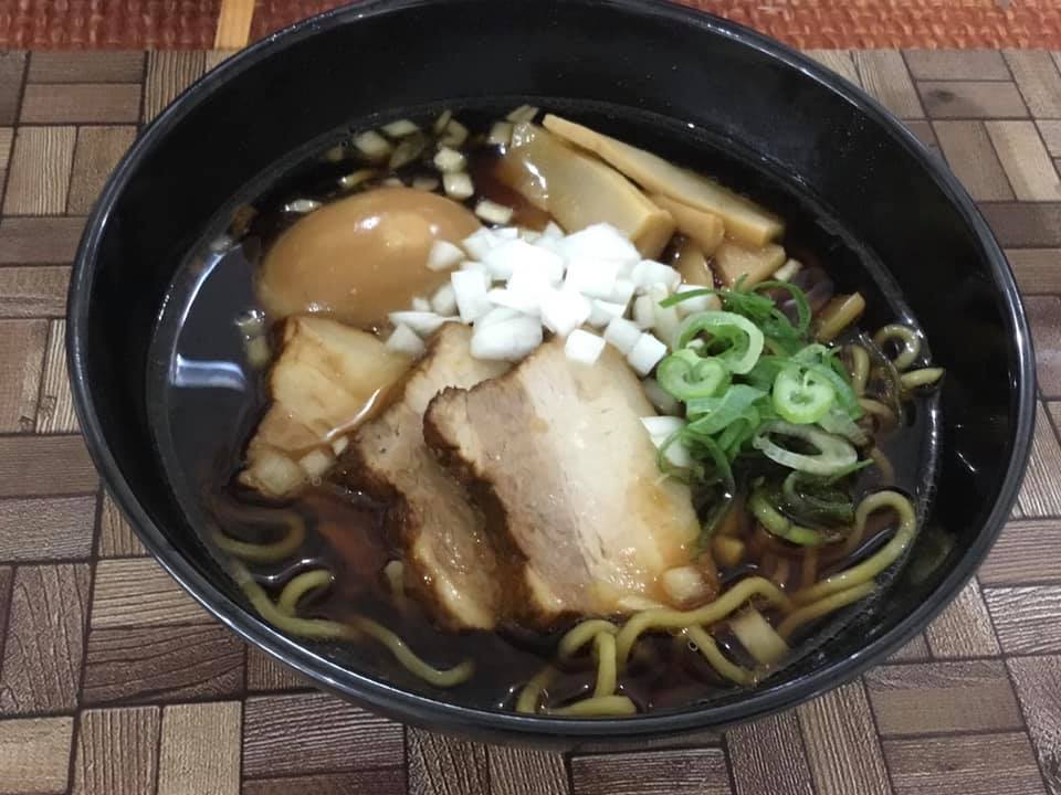今回は、たまり醤油を使って、チーフ渾身のチャーシューと煮卵をトッピングです?