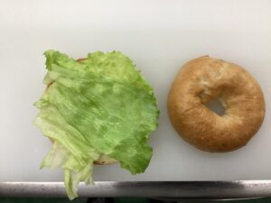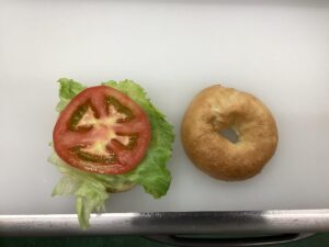 出来上がったベーグルは、半分にスライスして、オーブンで軽く表面焼いてから