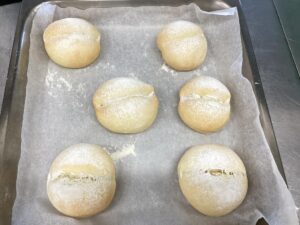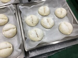 そして焼く前に粉をふって低温で焼くことで焼き目の薄い白いパンに仕上がるのです。