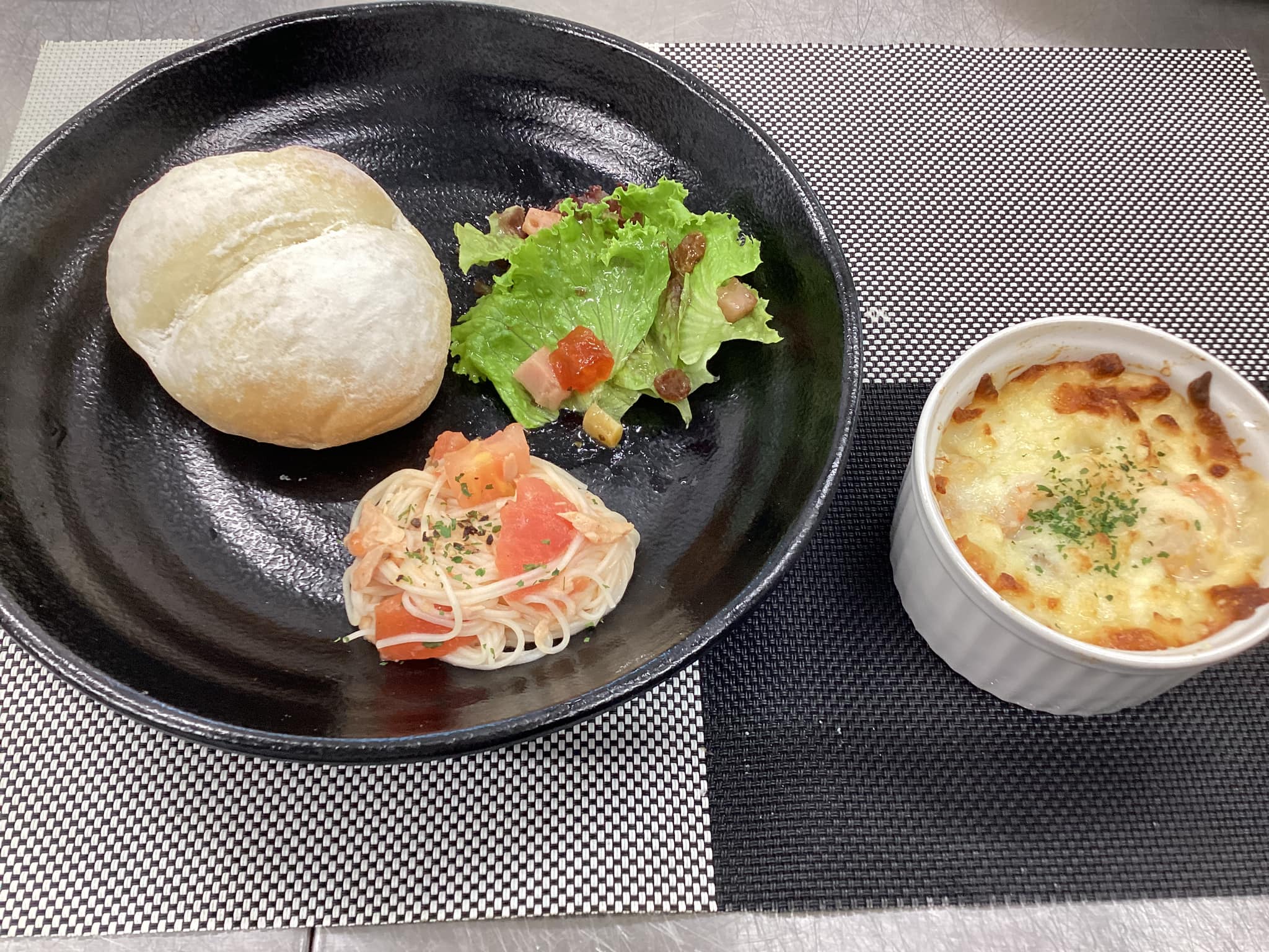 『手作り“ハイジの白パン“とミニエビグラタンのセットランチ』です✨