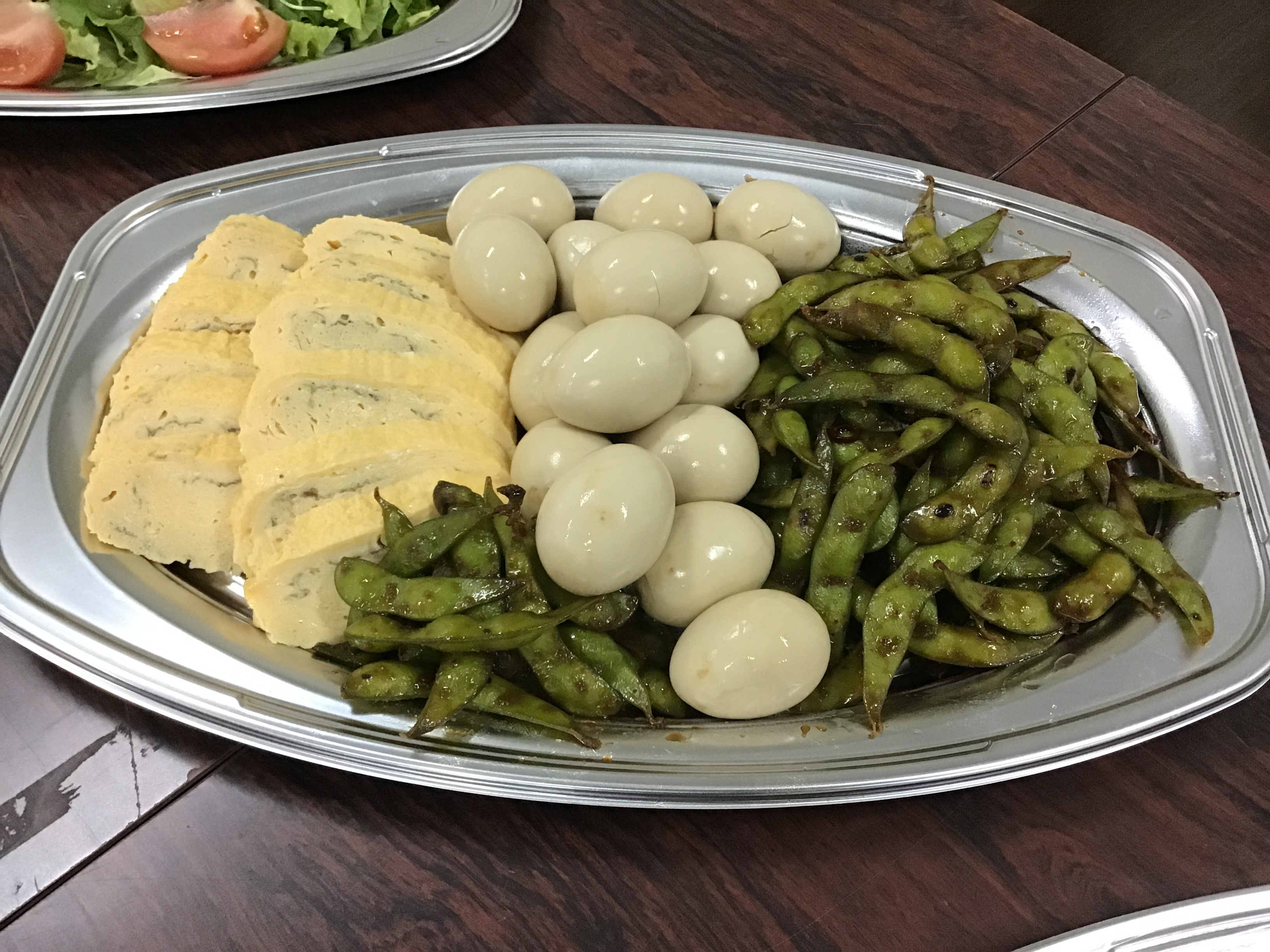 ・おつまみピリ辛枝豆と玉子二種(煮卵と洋風玉子焼き)