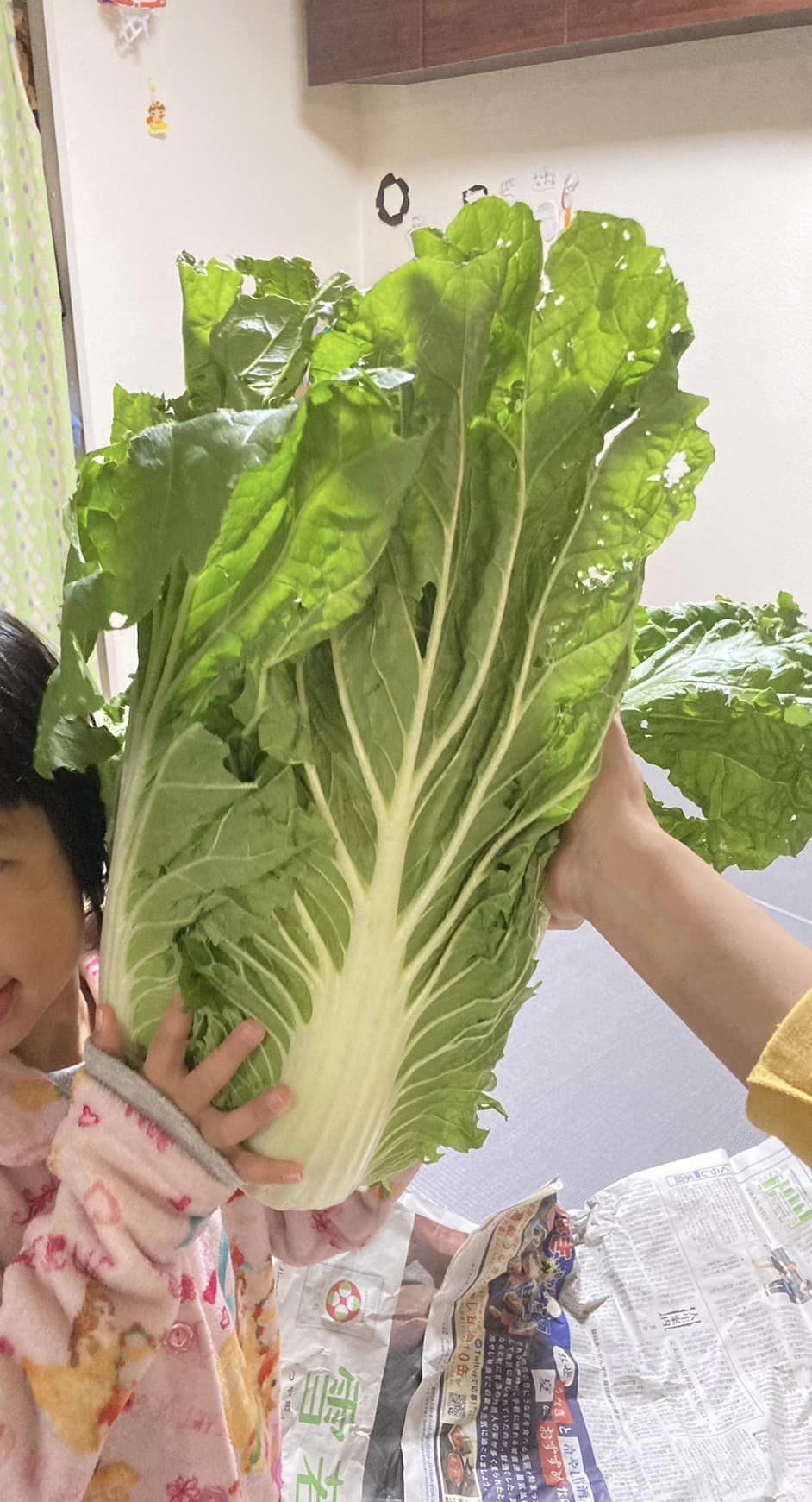 「じぃじばぁばのとこからいつものミカン届いたから、白菜と一緒に持っていくわ〜」と。