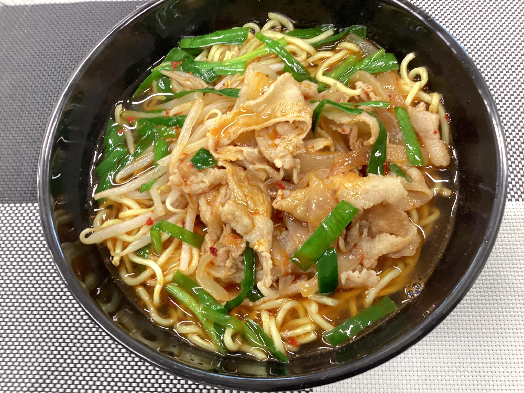 基本的には醤油ベースのスープで、具材としてラー油や唐辛子で炒めた豚肉と玉ねぎがのっているのが定番です。