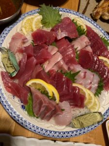 着いた夜は新鮮な魚とお酒で夜更かし、朝はすぐ近くの海を散歩して、ワンちゃんと遊び昼前から桜祭りへ。