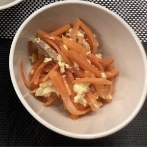 ご存知の通り沖縄の郷土料理で、千切り人参を炒めて卵と合わせたシンプルなメニューです。