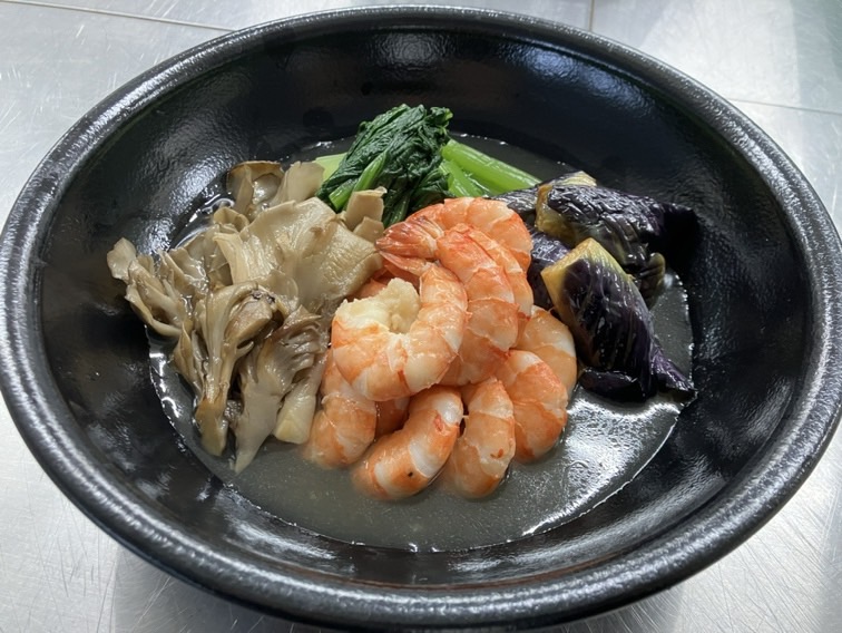 ・海老、茄子、小松菜の焚き合わせ