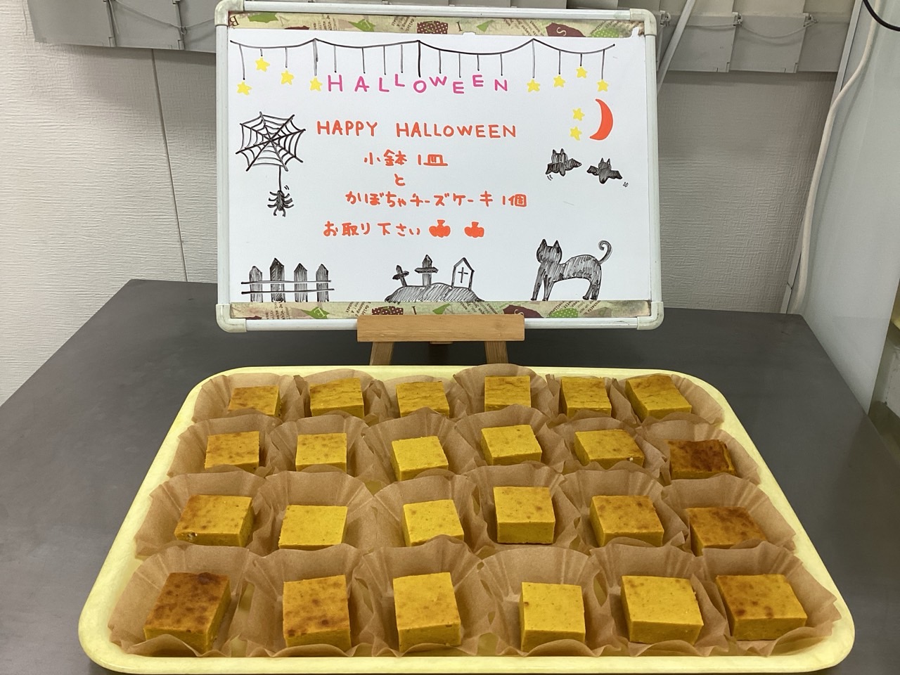 10月31日はハロウィンということでかぼちゃチーズケーキを振る舞いました。