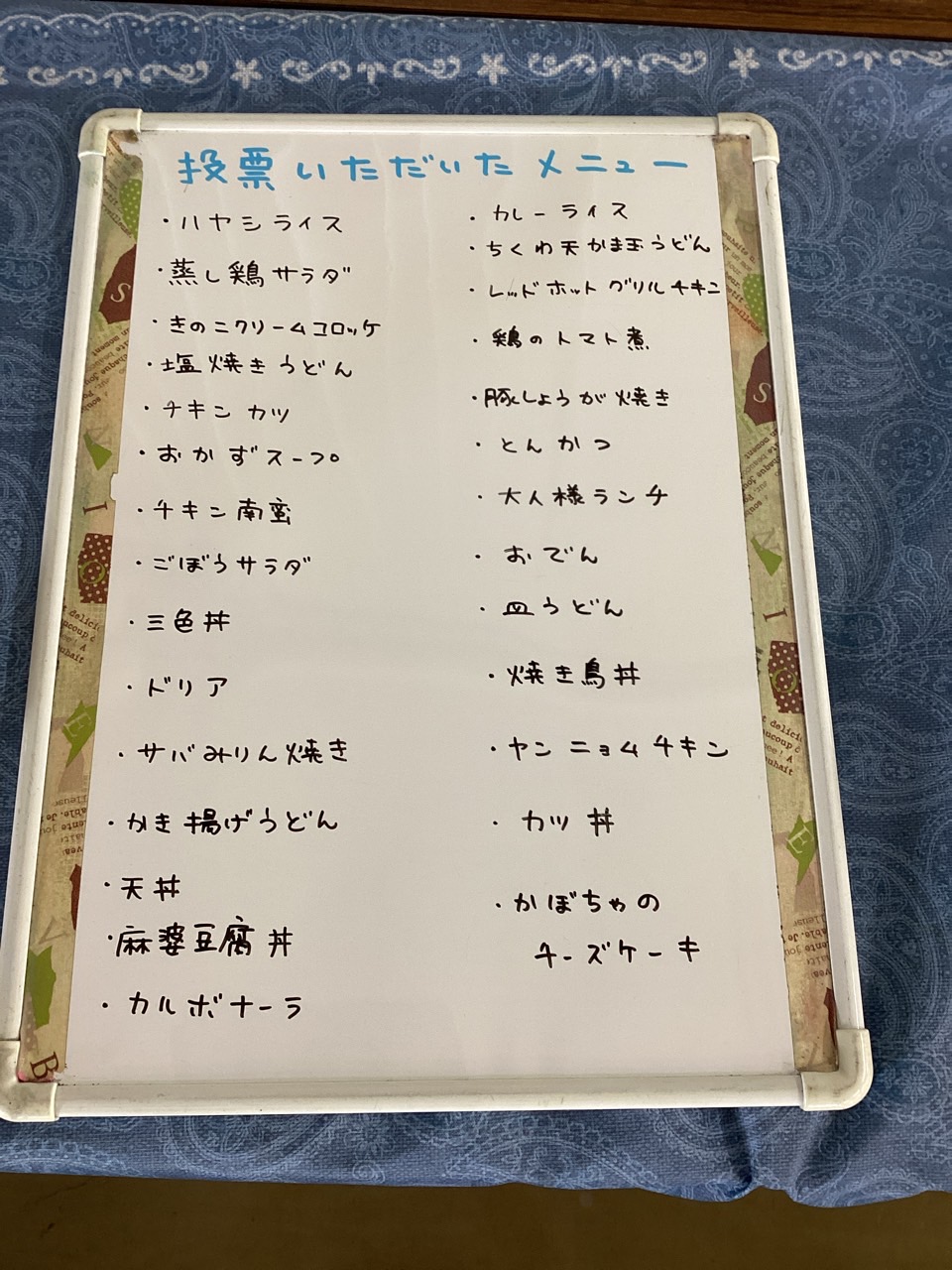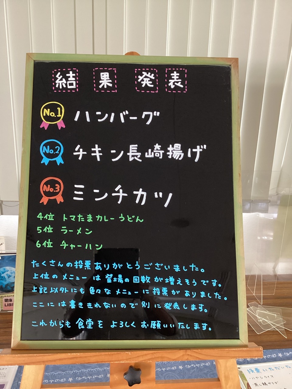 先日、所属事業所にて食堂メニューの人気投票を行なった結果を発表します。