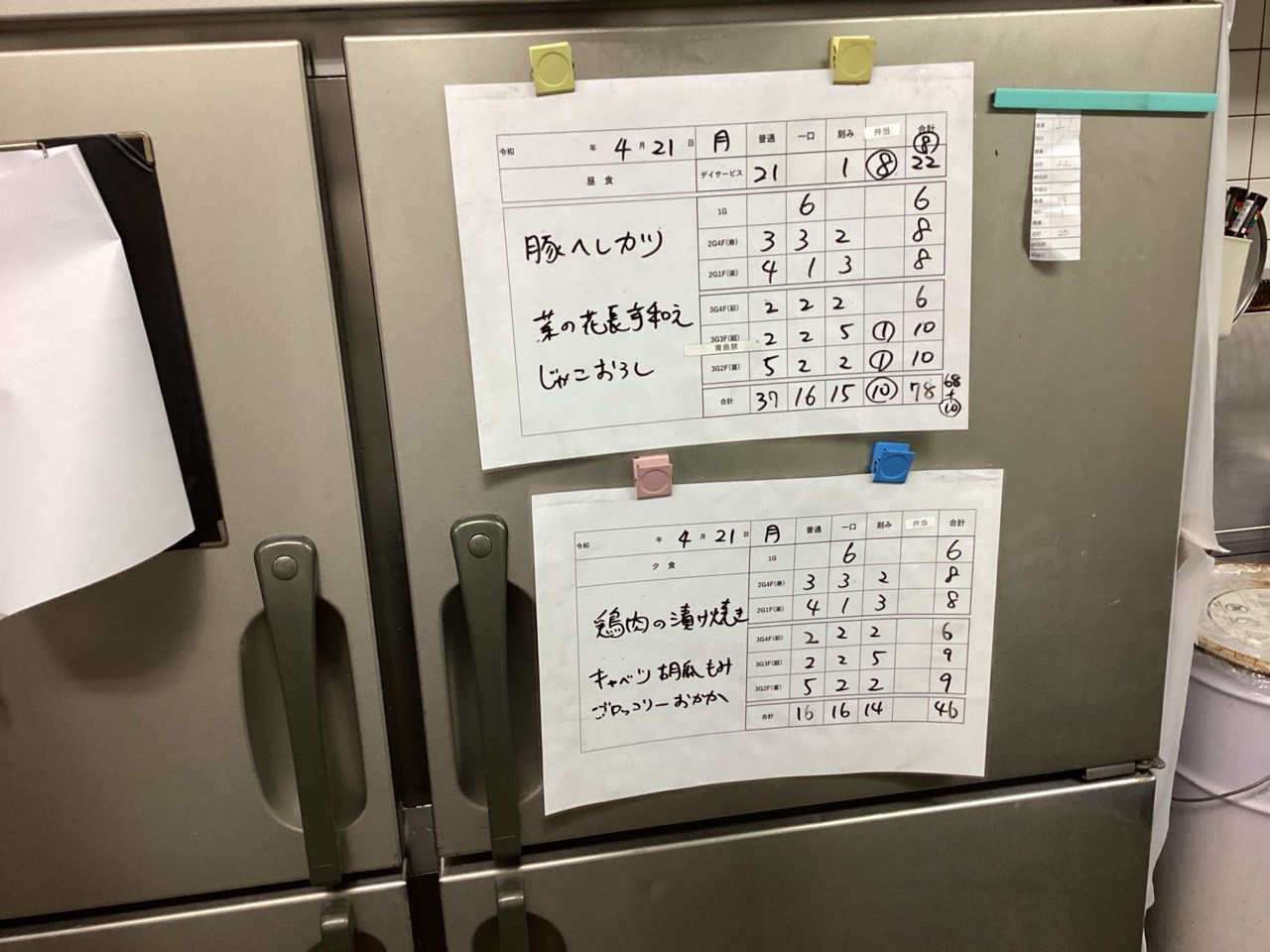 施設の入居者様の昼食と夕食の提供と