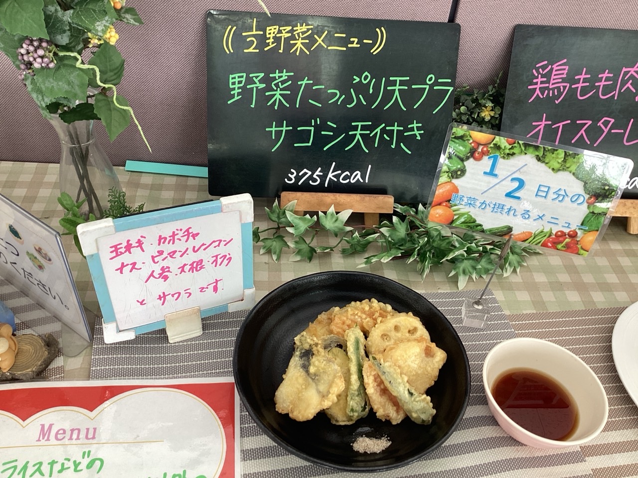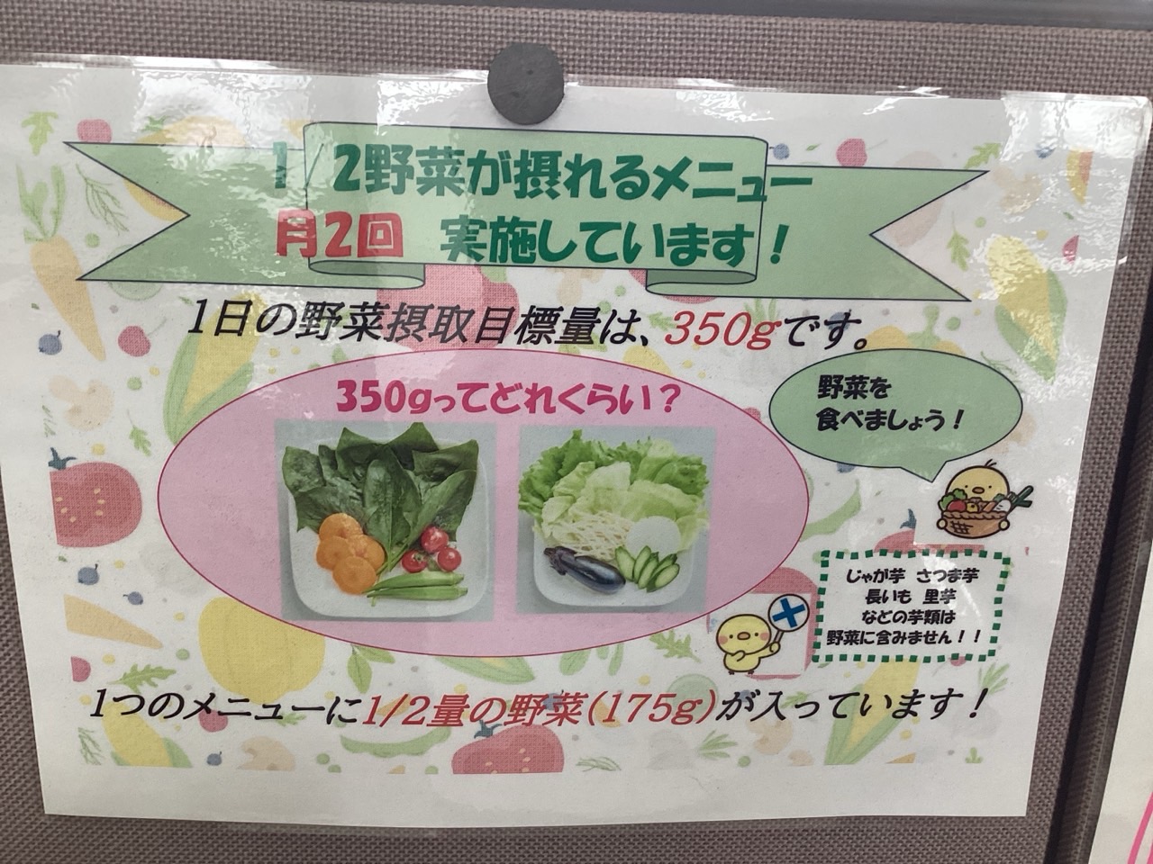 これは、1日に必要な野菜の1/2を摂取できるメニューのことです。