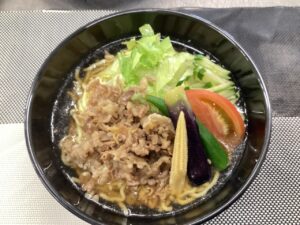 『牛肉と夏野菜の冷スープ麺』です🍜