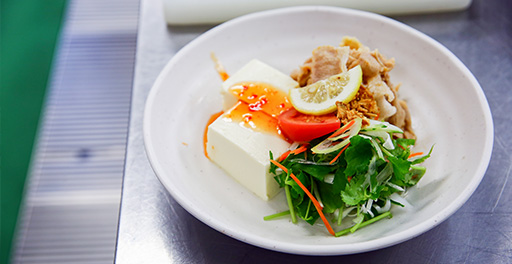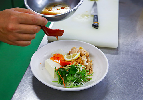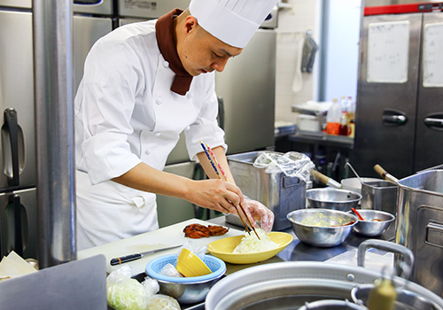 現在は、大阪河﨑リハビリテーション大学の学生食堂のチーフとして調理はもちろん、食材の注文・管理、掃除や衛生管理などの業務管理全般も行っています。以前よりも業務内容は増えましたが今の方が断然、楽しく仕事ができています。