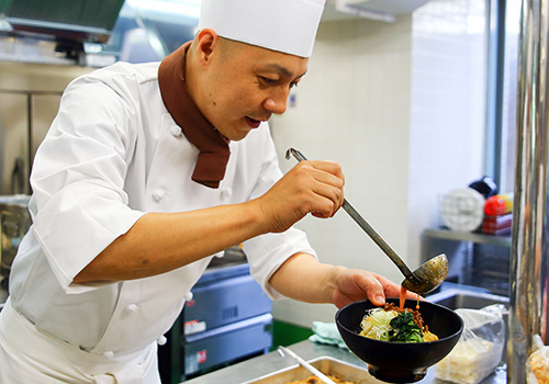 ホテルではフレンチしか経験がありませんでしたが、ここでは和・洋・中の全てができないといけません。ある意味大変ですが、でもこれがクリアできれば本当に楽しいです。僕はジャンルにこだわりはなく、料理をすること自体が好きだったので抵抗なく学ぶことができました。今はいろんな料理を調理できるようになり、自分の幅が広まったように思っています。